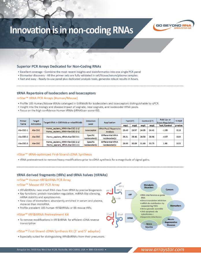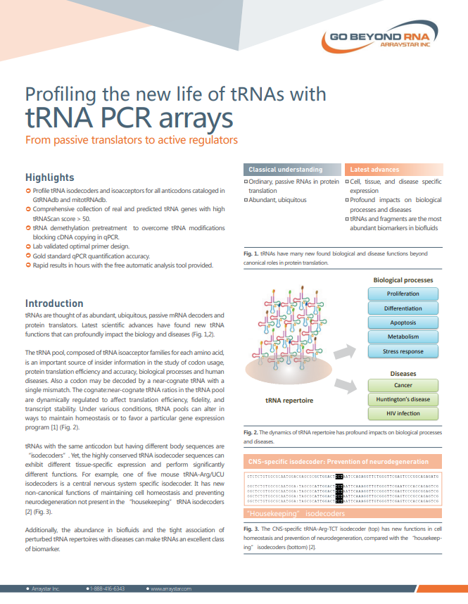 Profiling the new life of tRNAs with tRNA PCR arrays