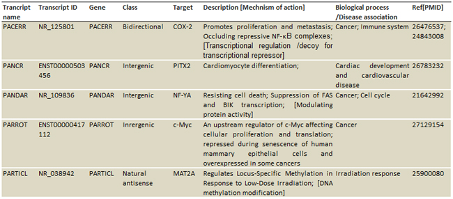 Well-known LncRNAs characterized for biological functions or human disease association are comprehensively collected from the most updated public databases and landmark publications.