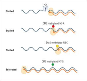 Figure1. DMS-seq plus RT Stop profiling. The reverse transcriptase (RT) stalls and the cDNA chain terminates not only when encountering a folded rG4 but also when encountering DMS methylated m1A or m3C, leading to mis-identification of rG4 sites.