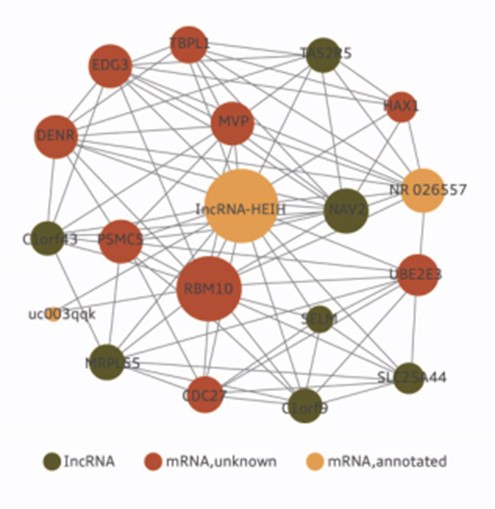 Figure 1. Coding-noncoding interaction Co-expression (CNC) subnetwork of an lncRNA-HEIH in hepatocellular carcinoma.