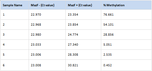 Arraystar MazF qPCR service is based on methyl-sensitive MazF RNase and highly sensitive and accurate qPCR to detect and quantify m6A modification at the exact single nucleotide of the m6ACA site. It can also be used as an independent, non-antibody based method to confirm epitranscriptomic profiling results.